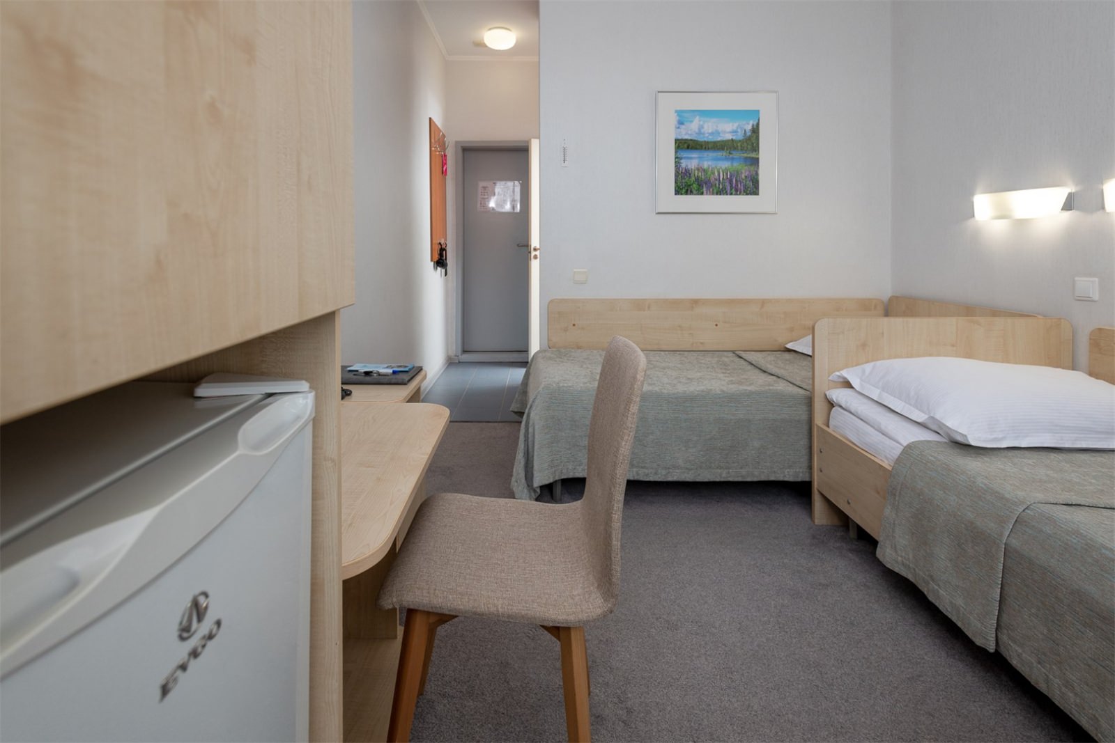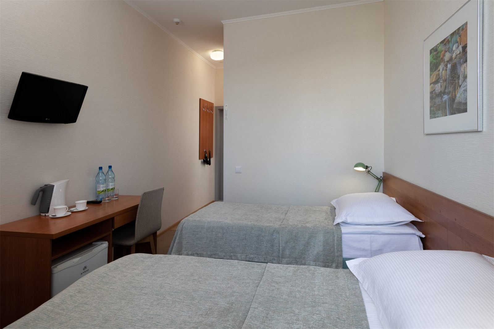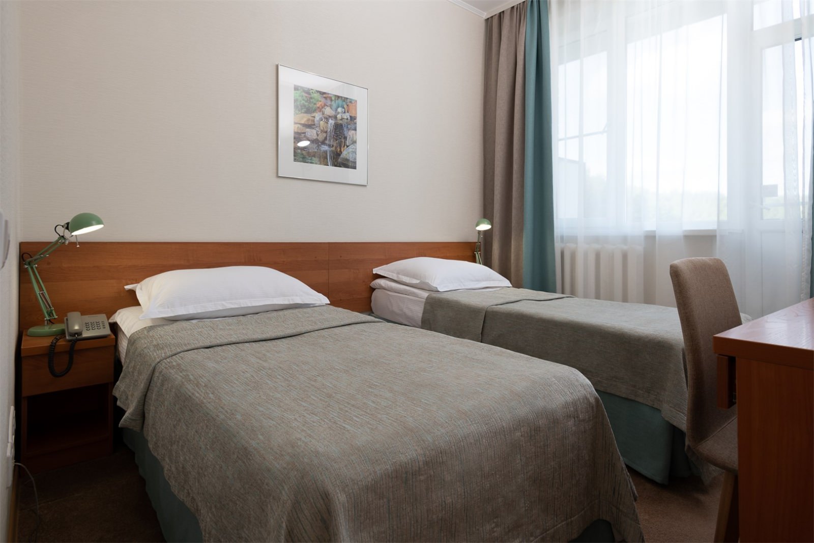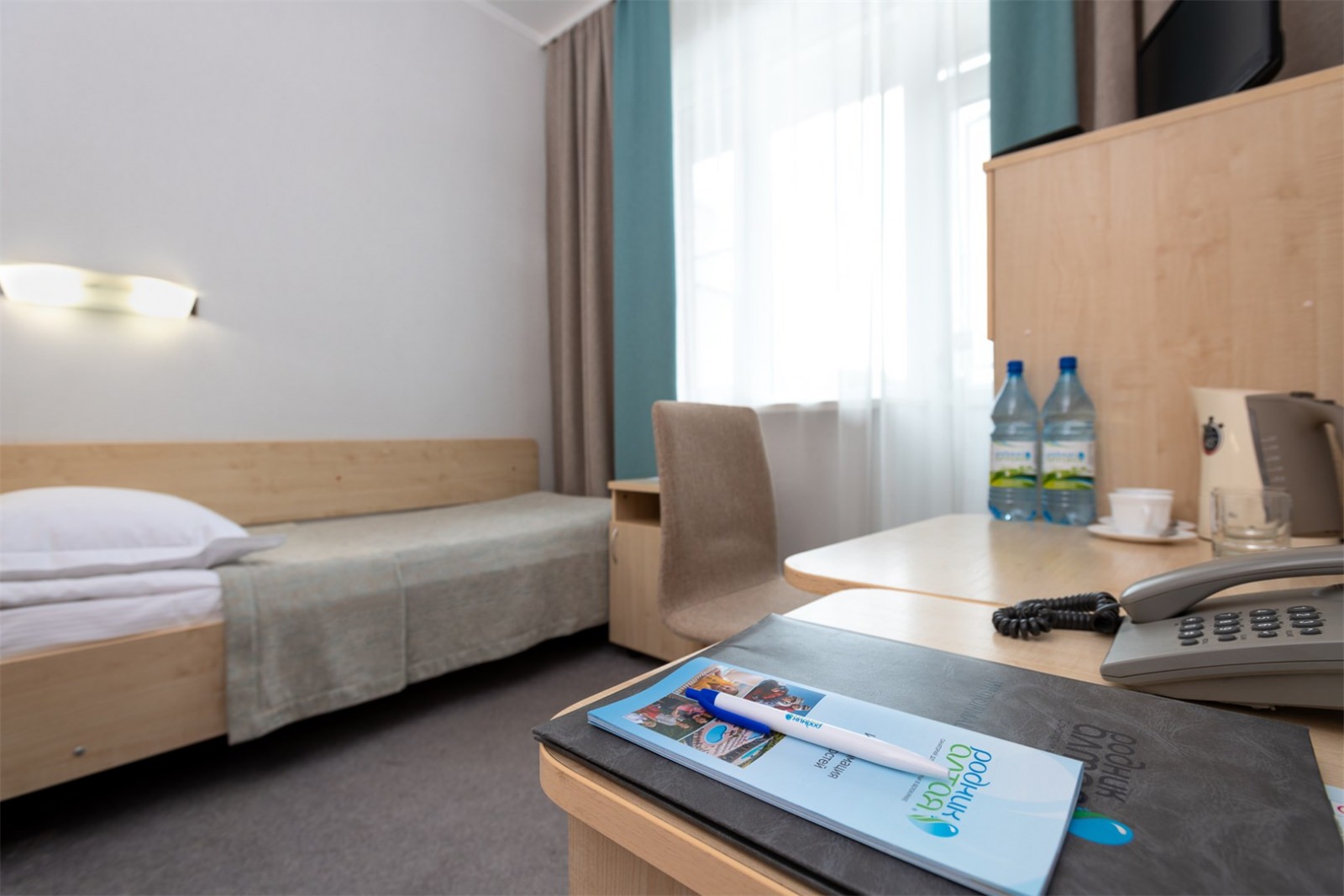 Номера расположены в корпусах «Родник» или «Здравница» Однокомнатный номер, состоящий из комфортабельной спальни, прихожей и балкона. Две односпальные кровати. Дополнительное оборудование (обогреватель, ортопедическую подушку и мн.др.) можно заказать бесплатно по бланку «Лист пожеланий», который есть в каждом номере санатория. В свободном доступе в бытовой комнате любого корпуса: стиральная машина, гладильные доски и утюги. На ресепшен - индивидуальные ячейки для хранения.