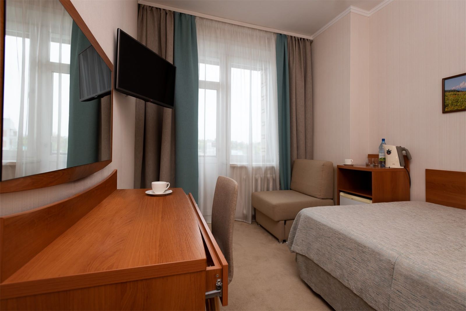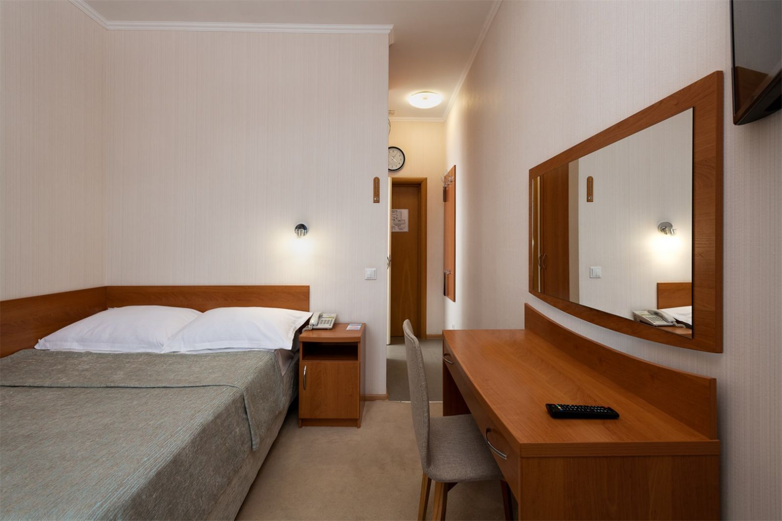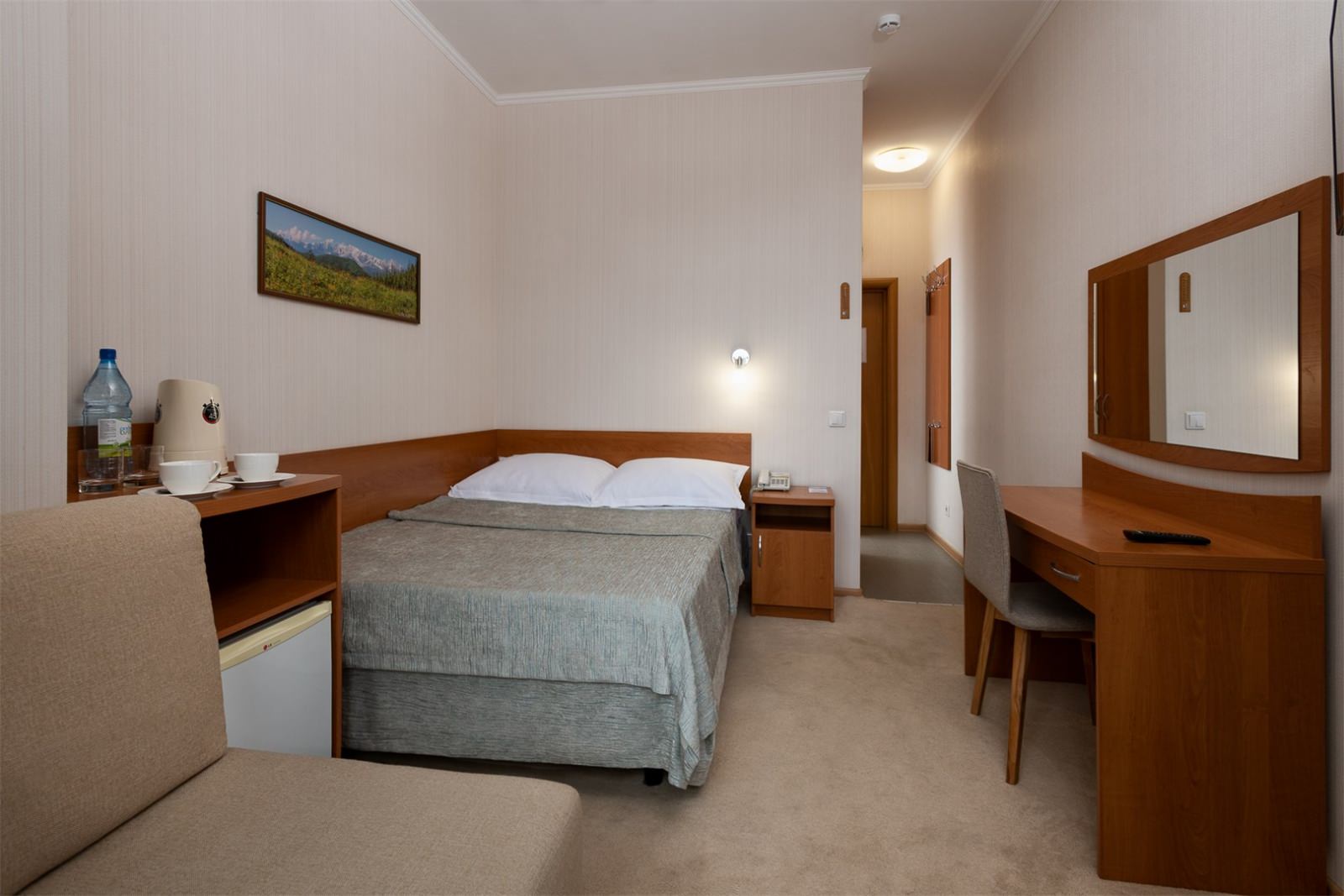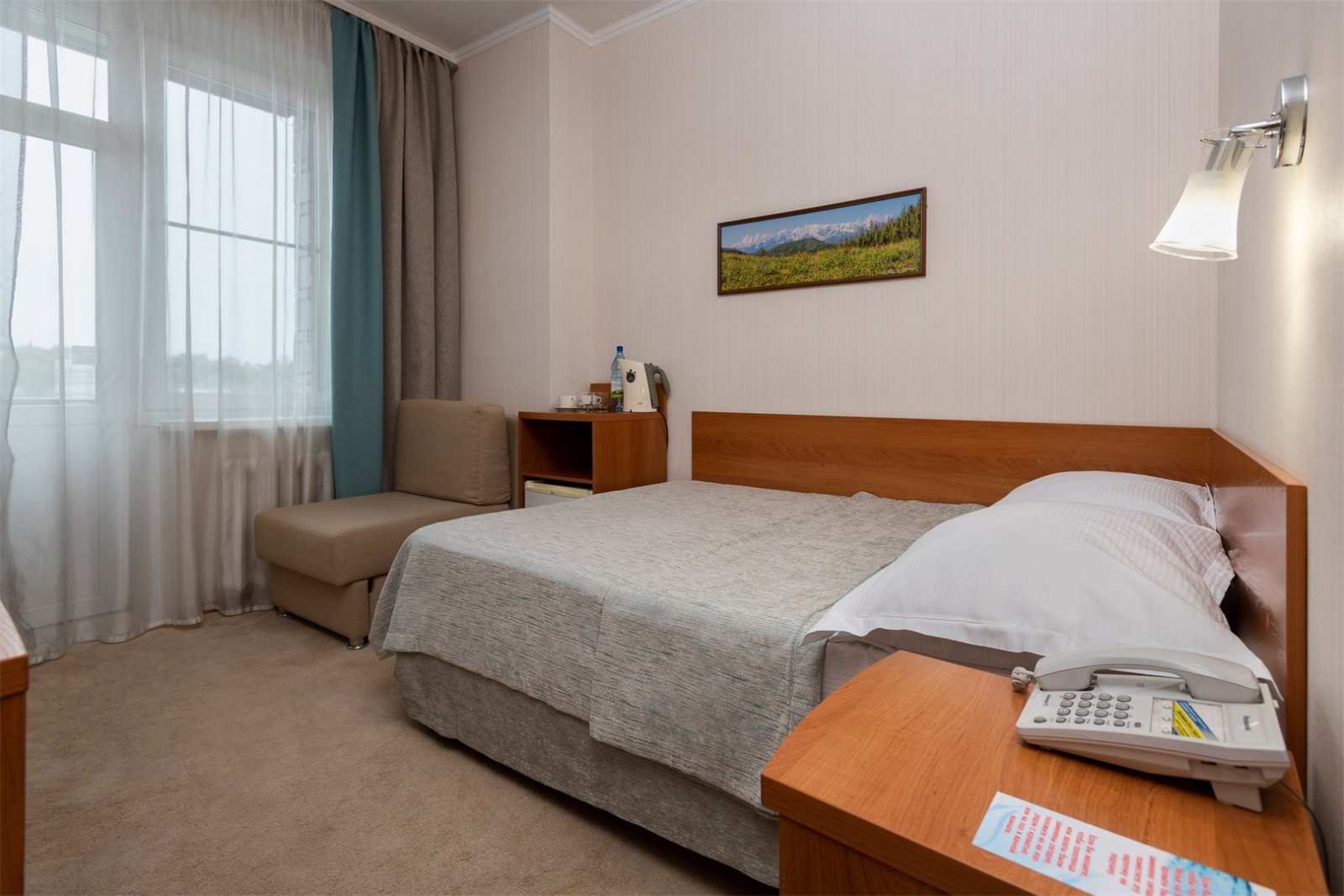 Небольшой и очень комфортный номер, с широкой кроватью, раскладным креслом и балконом. Номер рассчитан на комфортное размещение 1 взрослого или 1 взрослого с ребенком. Взрослый расположится на 1,5-спальной кровати, а ребенок на раскладном кресле. Корпус: «Родник» Вид из окна: на город Тип кровати: дабл (2-спальная кровать) Число основных мест: 1 Число дополнительных мест: 1 (кресло) Возможность установки детской кроватки: нет Дополнительное оборудование (обогреватель, ортопедическую подушку, детская кроватку, детскую ванночку и мн.др.) можно заказать бесплатно по бланку «Лист пожеланий», который есть в каждом номере санатория. В свободном доступе в бытовой комнате любого корпуса: стиральная машина, гладильные доски и утюги. На ресепшен - индивидуальные ячейки для хранения.